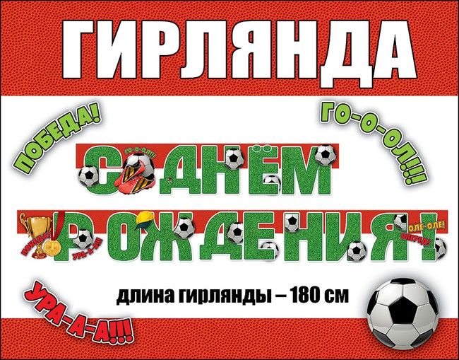 Гирлянда С Днем Рождения 180см мужская футбол