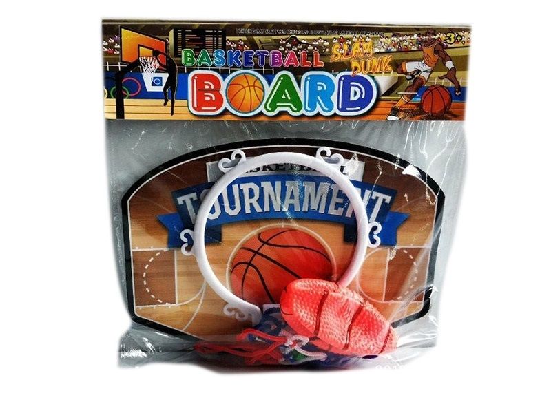 Комплектация: баскетбольный щит 19x14 см и мяч, ПВХ пакет.