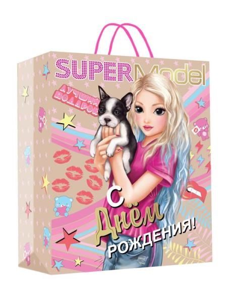Подарочный крафтовый пакет «СуперМодель. С Днём рождения!» ТМ «Чудо-праздник» станет отличным дополнением к вашему подарку и сделает его незабываемым:
