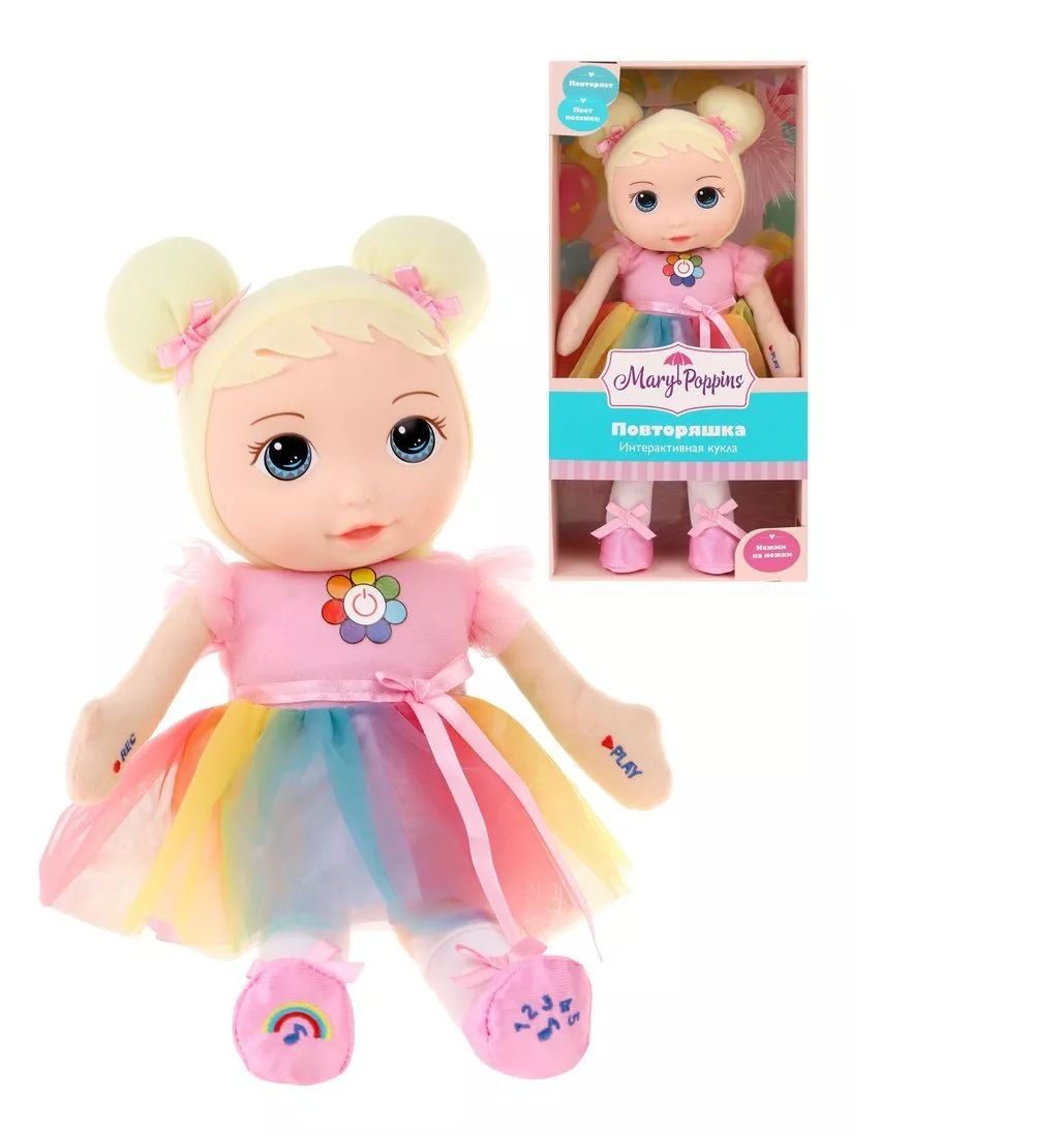 Кукла Повторяшка умеет петь песенки про цвета и цифры и может повторить все, что скажет ей ее маленькая подружка.