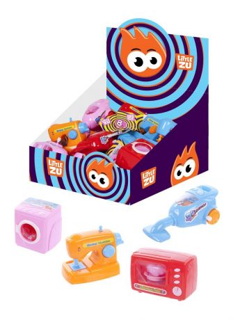 В дисплее 4 вида игрушек с заводным механизмом - стиральные и швейные машинки, пылесосы и микроволновки. Стоит покрутить рычажок на изделии, как барабан стиральной машины начнёт крутиться, курица внутри микроволновки - вращаться, пылесос поедет вперёд, а игла швейной машинки будет двигаться вверх-вниз. Всего в дисплее 34 игрушки.
