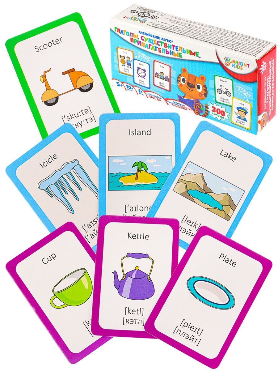Английский? Легко! Глаголы, существительные, прилагательные» - набор образовательных карточек с яркими иллюстрациями, которые помогут ребёнку выучить важные английские слова. С одной стороны карточек ждёт слово на русском языке, а с обратной стороны - не только его перевод, но и транскрипция на двух языках. Это значительно облегчит изучение нового языка. Показывайте карточку ребёнку сначала чёрно-белой стороной, а затем проверяйте вместе ответ, перевернув карточку цветной стороной.