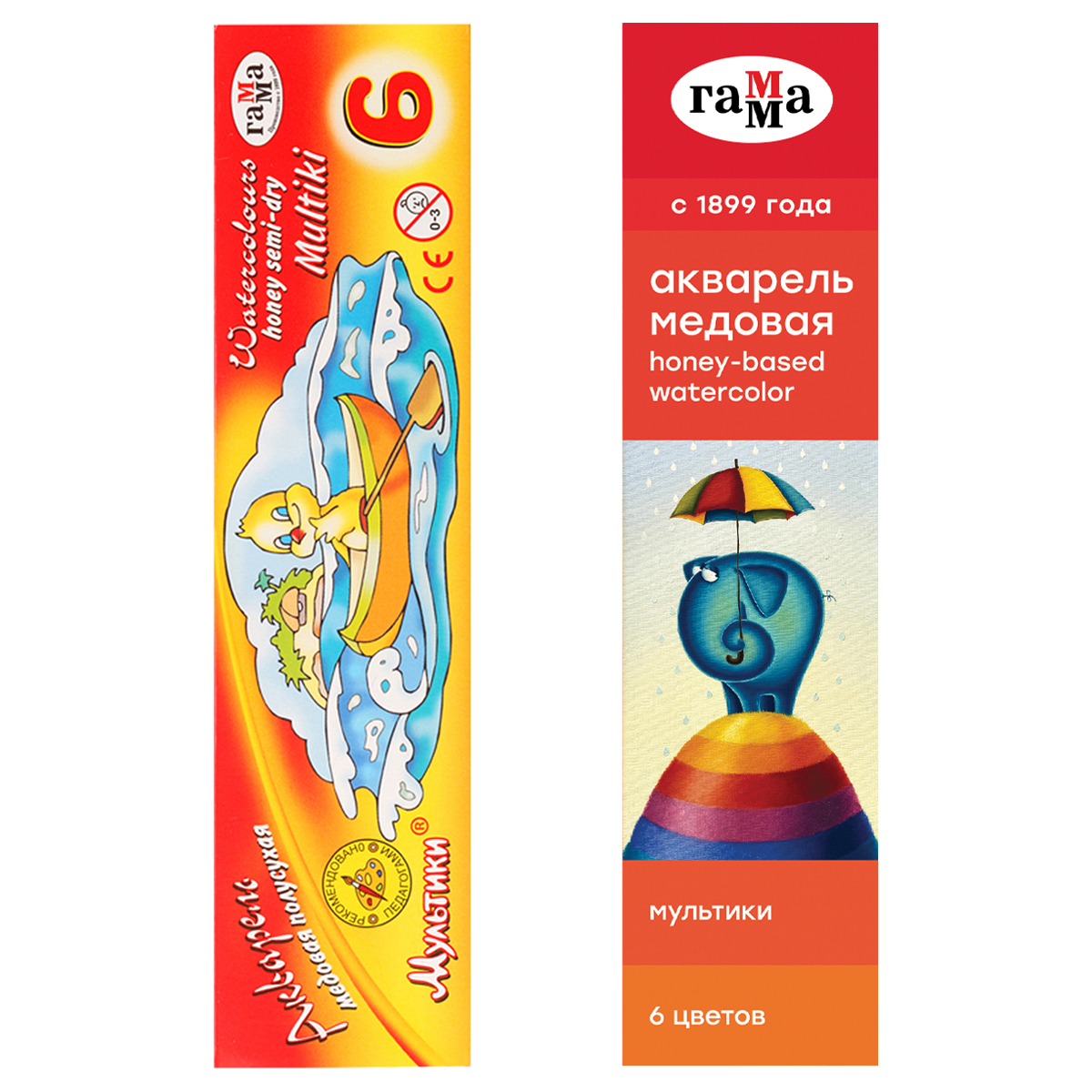 Акварель Гамма «Мультики», медовая, 06 цветов, без кисти, картон. упак.