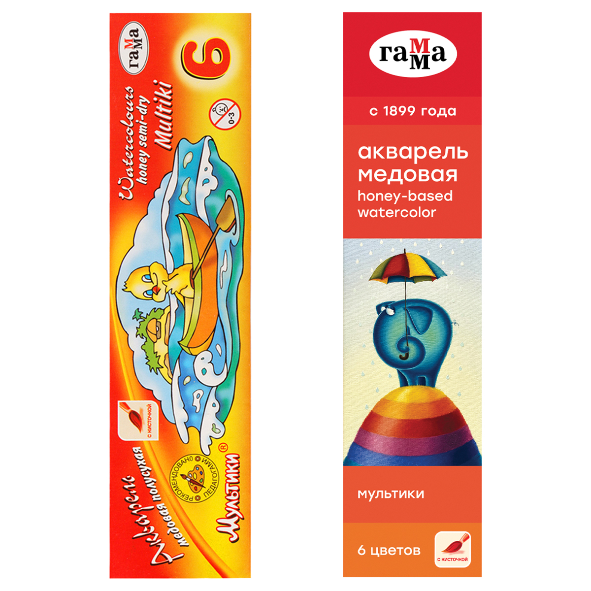 Акварель Гамма «Мультики», медовая, 06 цветов, с кистью, картон. упаковка