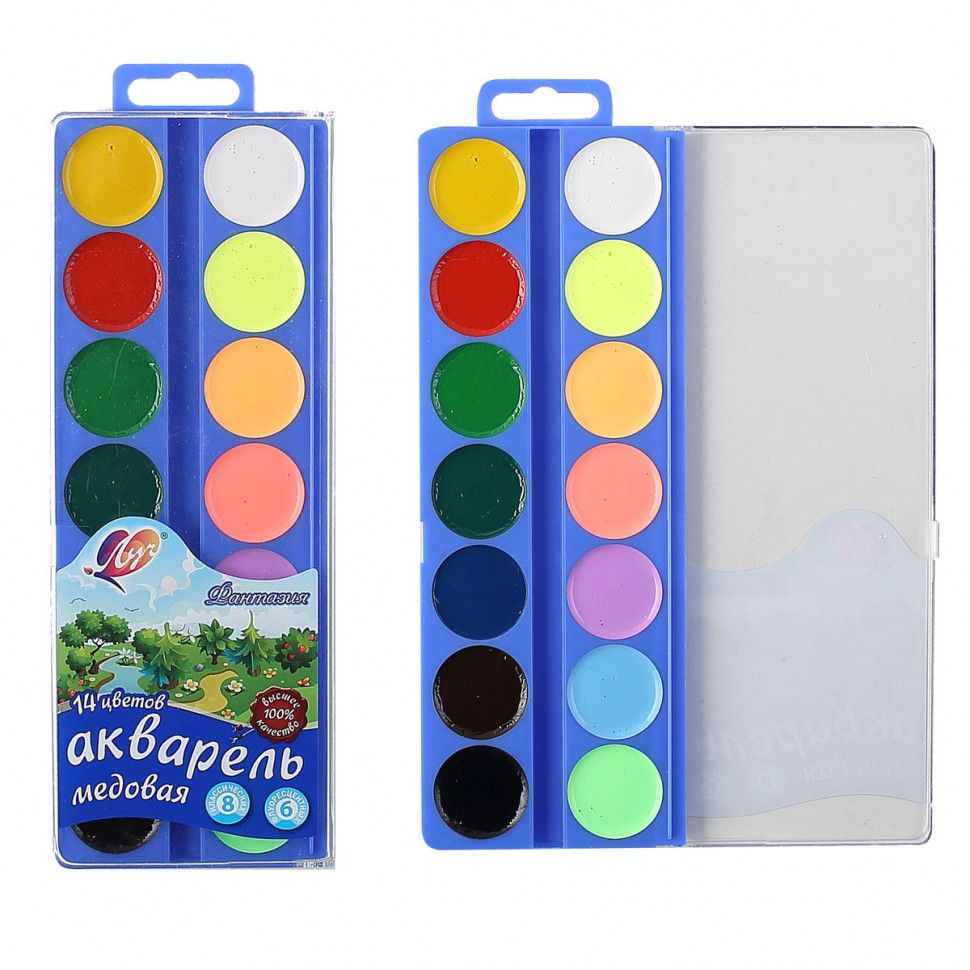 Акварель « Луч » Фантазия 14цв медовая, без кисти, пластиковая коробка