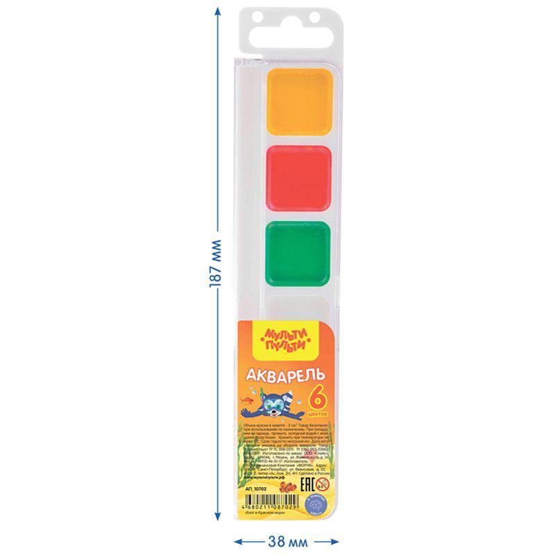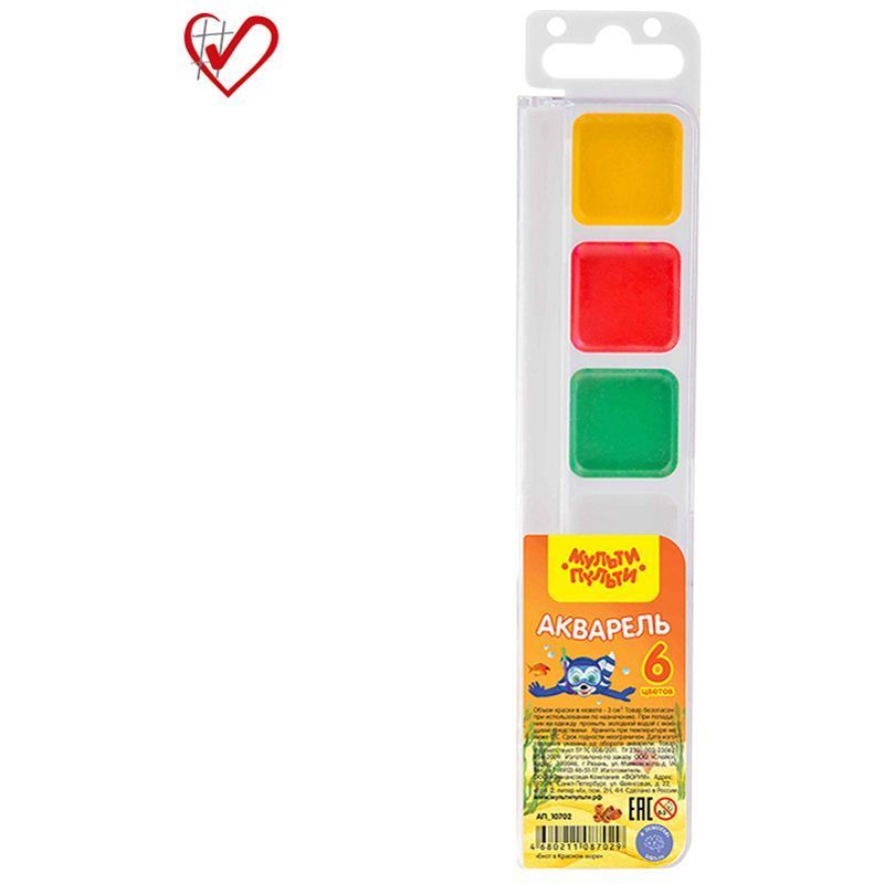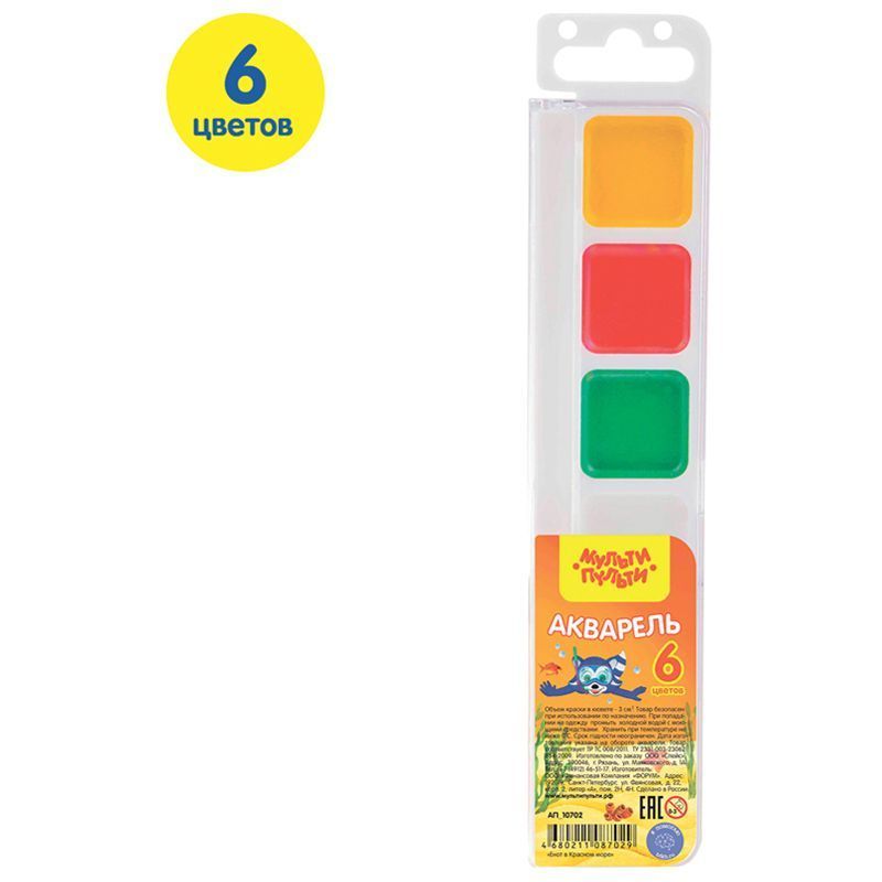 Акварель Мульти Пульти медовая 6 цветов,без кисти,пластик.упак. 10702