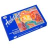 Акварельные краски серии «Студия» изготовлены на основе гуммиарабика. Полусухая акварель сушится при температуре не выше 40 °C , что позволяет сохранить яркость и свежесть краски. После высыхания она становится матовой. Цвета легко смешиваются между собой, прекрасно размываются и легко набираются из кюветы. Набор из 24 цветов акварельных красок идеально подойдёт для начинающих художников и студентов художественных училищ. Кювета 2,6 мл.