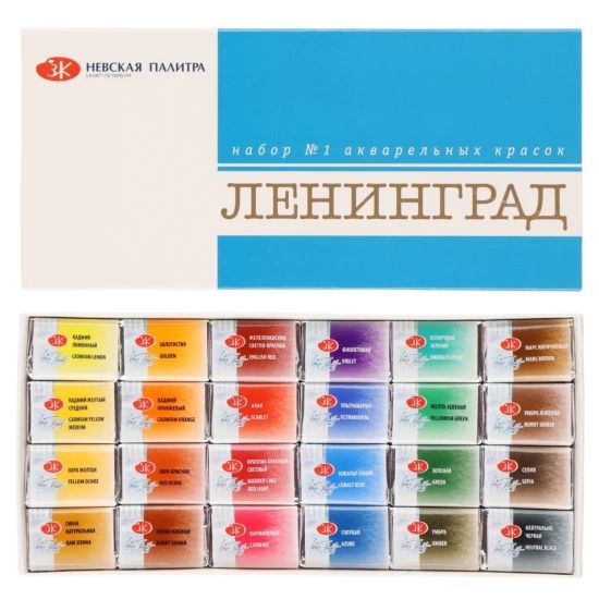 Акварель ЗХК «Ленинград-1», художественная, 24цв., без кисти, картон