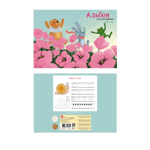 Альбом для рисования 10л. Скрепка.«Цветочная поляна» (Эксклюзив)