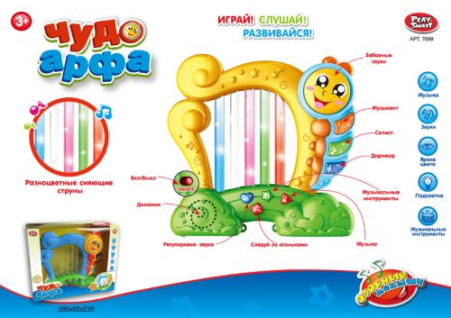 Арфа на бат. яркие цвета, звук, свет в/к 28,5*8,5*23,5 см
