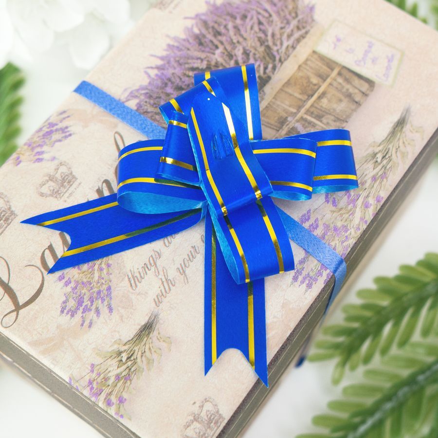 Бант-бабочка 1,5 см, золотая полоса,синий