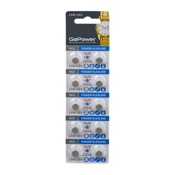 Батарейка GoPower G3/LR736/LR41/392A/192 BL10 Alkaline 1.5V