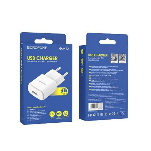 Блок питания сетевой 1 USB Borofone, BA48A 2.1A белый