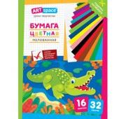 Цветная бумага мелованная А4, ArtSpace, 32л., 16цв., «Крокодил»