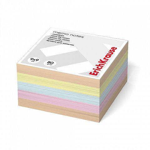 Бумага для заметок на склейке ErichKrause, 90x90x50 мм, 4 цвета