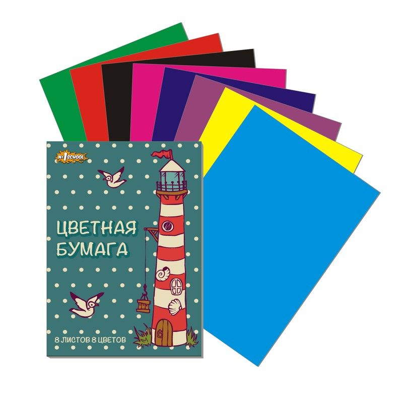 Набор цветной бумаги №1 School Маяк. Бумага цветная, формат А4, 8 листов. Бумага 8 цветов. Для детского творчества. Помогает развивать творческое мышление, моторику рук, воображение