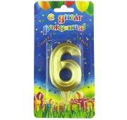 Свеча-цифра ГРАНЬ золотой металик «6»