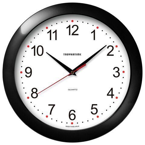 Часы настенные TROYKA 11100112, круг, белые, черная рамка, 29х29х3,5 см