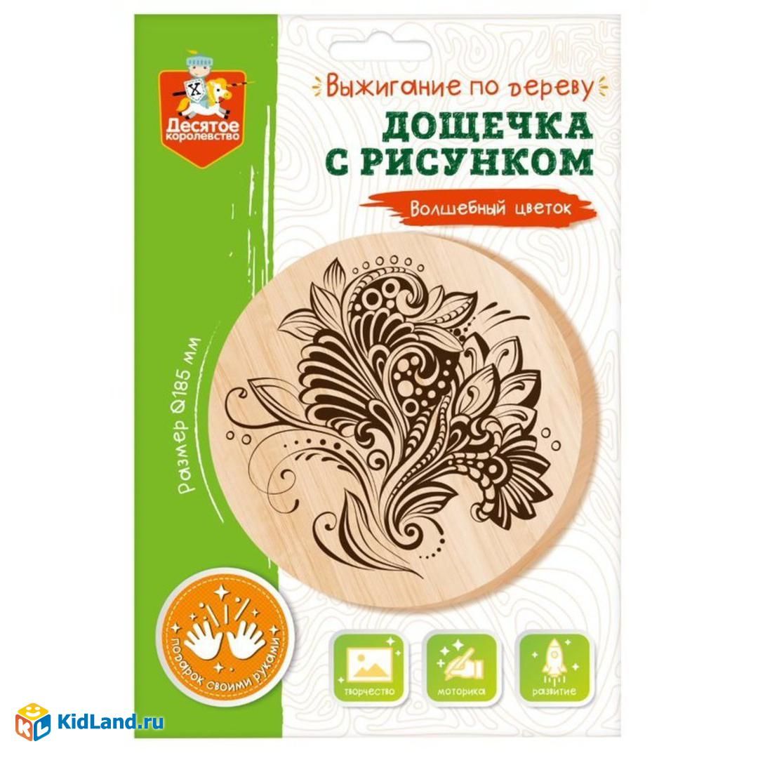 Дощечка для выжигания «Волшебный цветок» позволит каждому украсить свой дом уютной композицией, созданной старинной техникой выжигания по дереву. Также дощечка с рисунком может стать прекрасным и оригинальным подарком близким. С этой дощечкой ребёнок легко освоит технику выжигания по дереву. Творческий процесс выжигания развивает мелкую моторику рук, внимание, усидчивость и фантазию.