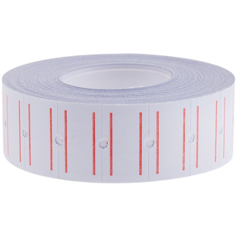 Этикет-лента 21*12мм белая красная полоса 4198