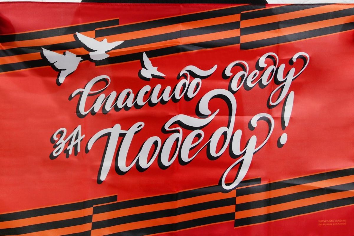Флаг Победы « СПАСИБО ДЕДУ ЗА ПОБЕДУ » 60*90см без древка