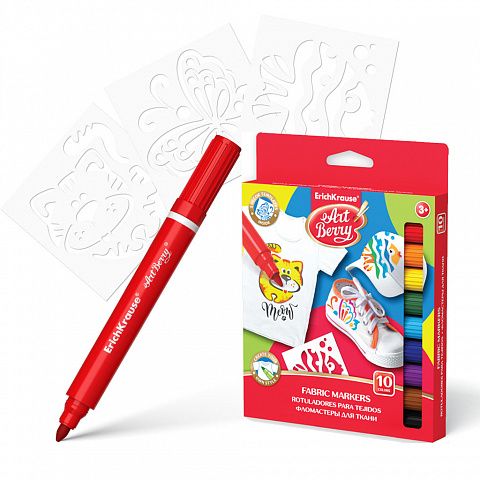 Фломастеры для ткани ArtBerry® 10 цветов с 3 раскрасками