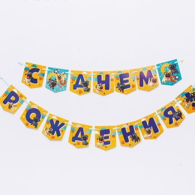 Гирлянда "С Днем Рождения!" Тачки, Феи, Мопсы