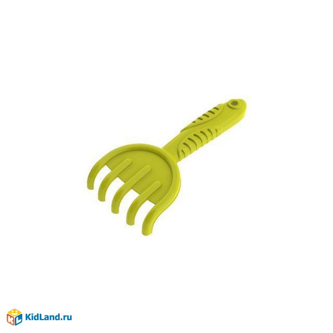 Грабельки «Волна» отлично подойдут для игры в песочнице. Качественные материалы не позволят пластику треснуть во время использования грабелек. Края пяти крупных зубчиков не заостренные, поэтому ребенок не поранится ими во время игры. Ручка имеет рельефную поверхность, что не даст грабелькам скользить выскальзывать из детской ручки.
