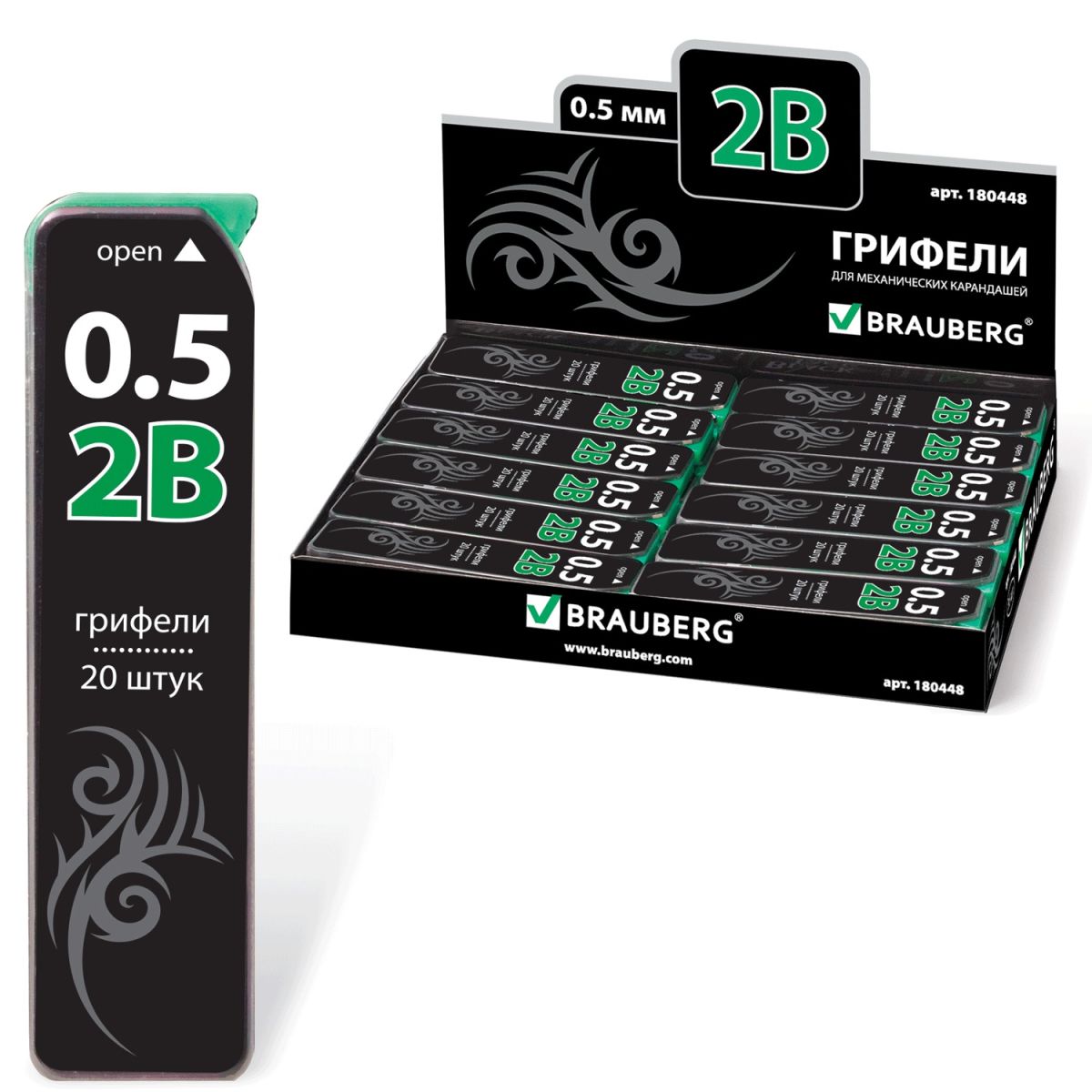 Грифели запасные BRAUBERG Black Jack, 2В, 0,5мм, 20шт 180448