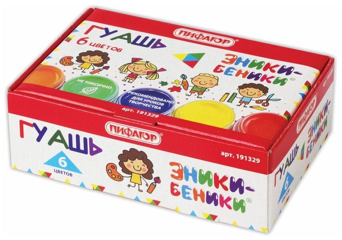 6 ярких сочных цветов красок полностью безопасны в использовании, не токсичны и не имеют резкого запаха. Гуашь имеет высокую светостойкость и укрывистость, легко размывается водой, хорошо наносится, без труда удаляется с рук и одежды. Краска находится в пластмассовой герметичной баночке, объем которой равен 10 мл. Общий объем - 60 мл