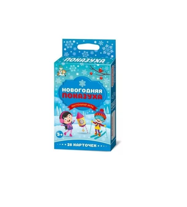 Настольная игра «Новогодняя показуха». Состав набора: карточки из картона – 28 шт. (8,5х5,5 см), инструкция – 1 шт. Игра помогает развить воображение, артистические способности и невербальное мышление, а время за игрой пройдёт весело и увлекательно. Ребёнок сможет не только вспомнить те слова, которые он уже знает, но и познакомиться с новыми, что значительно увеличит его словарный запас. Материалы: картон, бумага. Для детей от 5-ти лет. КОМПЛЕКТАЦИЯ Карточки из картона – 28 шт. (8,5х5,5 см), инструкция – 1 шт.