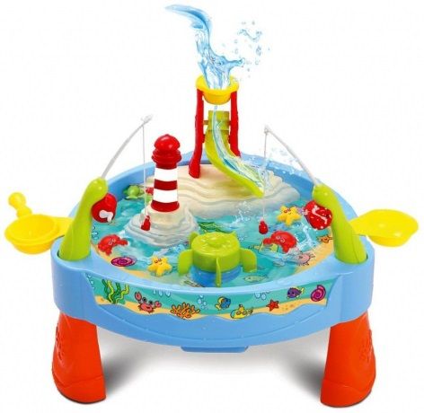 Развивающий столик «Рыбалка» от ТМ «Жирафики» предлагает ребёнку отправиться в очень интересное приключение! В миниатюрном бассейне с настоящей водой обитают милые жители: крабики, морские звёздочки и рыбки. Они плавают по кругу за счёт искусственного течения, создаваемого внутри бассейна маленьким моторчиком. Малышу предстоит поймать всех водных жителей при помощи магнитной удочки. Для того, чтобы игра была ещё веселее, кроха может самостоятельно включить музыку, нажав на крышу маяка. В комплекте также прилагаются 2 черпачка и водная мельница - для увлекательных игр с водой! Играть можно одному или устроить захватывающие соревнования с другом.Игрушка работает от 3-х батареек типа АА на 1,5 V (входят в комплект) заменяемые и от 3-х батареек типа AG10 в маяке незаменяемые. Элементы питания входят в комплект. Размер столика (ДхШ) составляет 40х40 см. Изделие изготовлено из пластмассы. Рекомендованный возраст: 3 года +