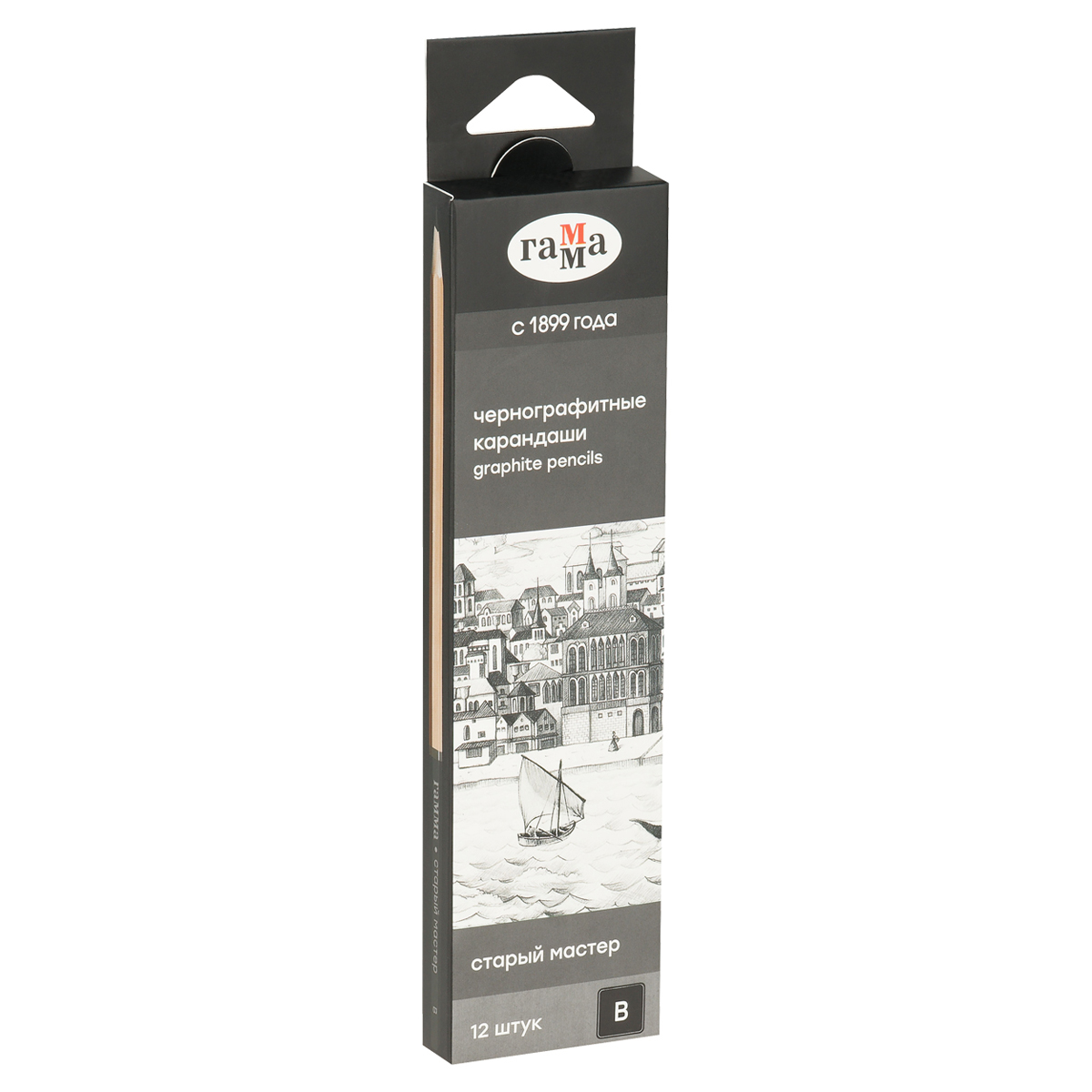Чернографитные карандаши ГАММА серии «Старый мастер» твёрдостью B предназначены для рисования, скетчинга и черчения на бумаге и картоне. Диаметр грифеля – 2,15 мм. Карандаши «Старый мастер» выпускаются в 20 различных степенях твердости: от 8H до 10B, поэтому идеально подойдут как для художников, иллюстраторов, так и для архитекторов и инженеров. Карандаши упакованы в картонную коробку по 12 штук.