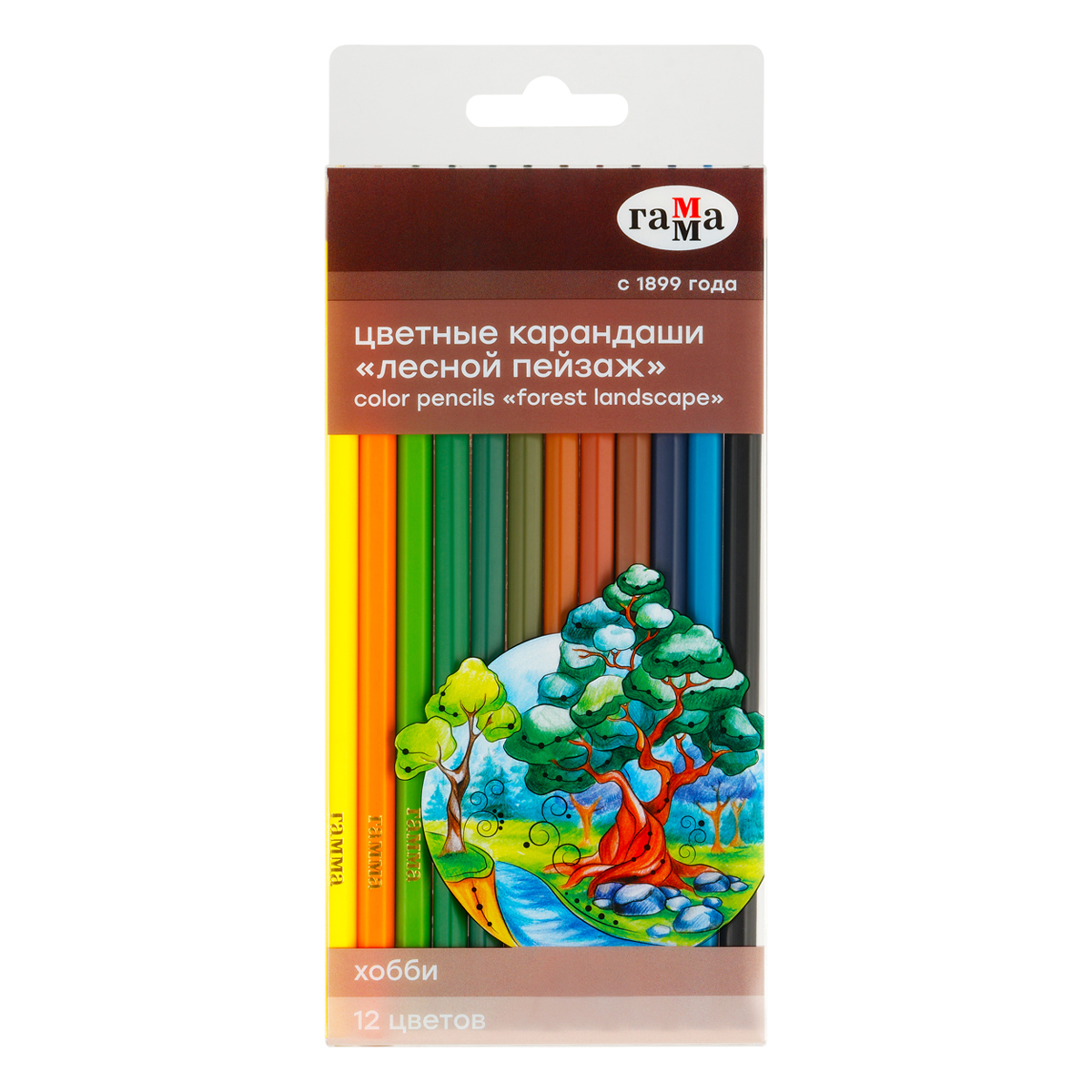 Карандаши цветные Гамма «Хобби. Лесной пейзаж», 12цв., заточен., ПВХ, европодвес