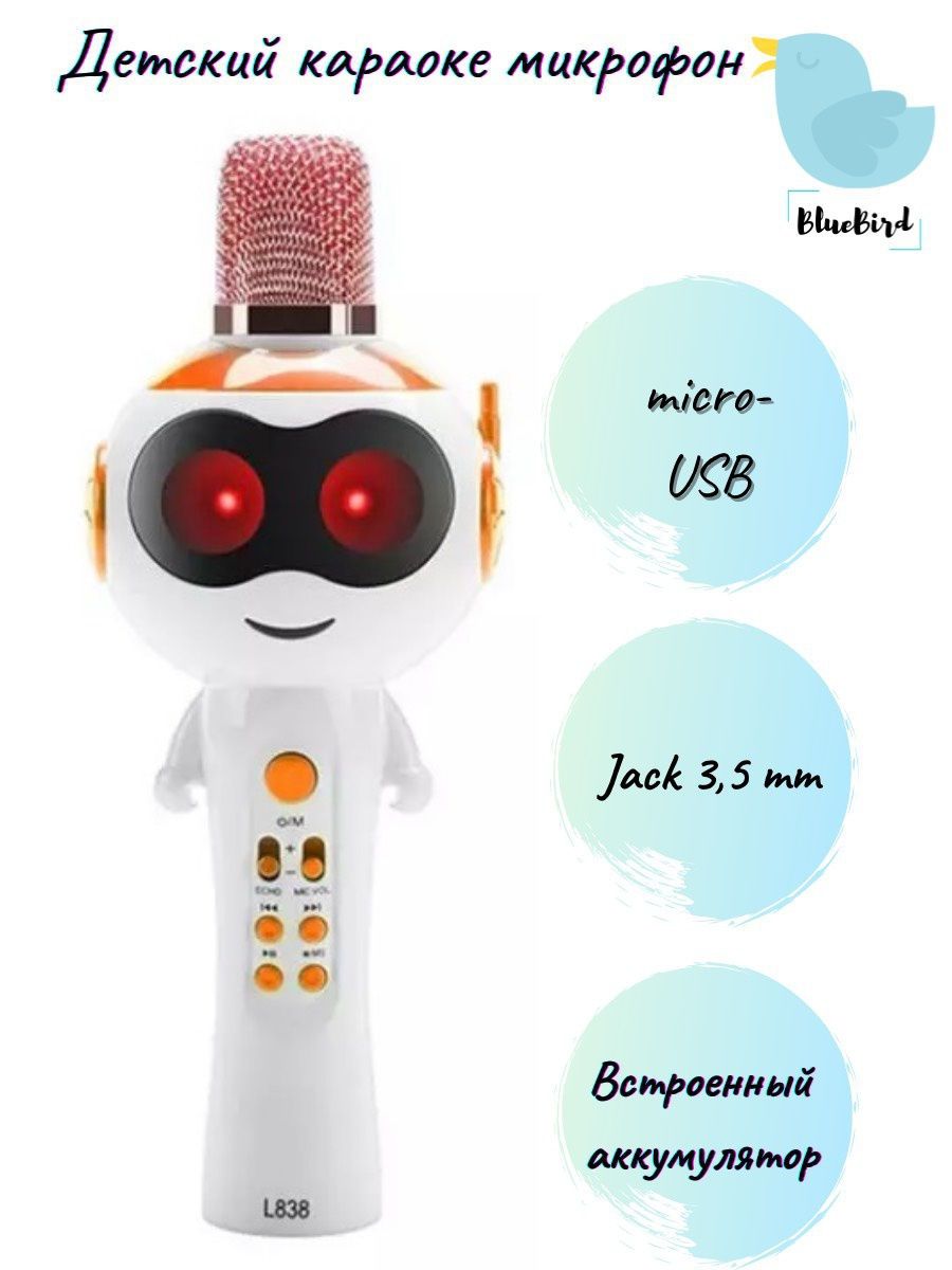 Детский микрофон караоке, со стильным дизайном не оставит равнодушным ни одного ребенка. Оснащен трехуровневым подавлением шума в микрофоне, что дает чистый звук. Микрофон караоке беспроводной, оснащен колонкой высокой мощности 5W. Микрофон детский, имеет 4 технологии изменения голоса, цветовую смену глаз. Так же микрофон караоке совместим с Bluetooth 5.0 поддерживает двойное беспроводное соединение для парного пения. Регулировка глубины эхо и громкости. Колонка микрофон караоке, компактный и легкий в использовании. Микрофон детский, поддерживает TF-карту до 16 Гб. (В КОМПЛЕКТЕ НЕ ИДЕТ) поддерживает формат воспроизведения mp3. Емкость аккумулятора 1200 mAh. Время работы до 4-5 часов. Время до полной зарядки 2-3 часа. В комплекте: usb кабель для зарядки микрофона. Микрофон караоке беспроводной с колонкой, совместима с iOS и android, доступна на расстоянии до 10 метров при подключении по Блютуз. Детский караоке микрофон, позволяет слушать через микрофон-колонку треки с вашего телефона.