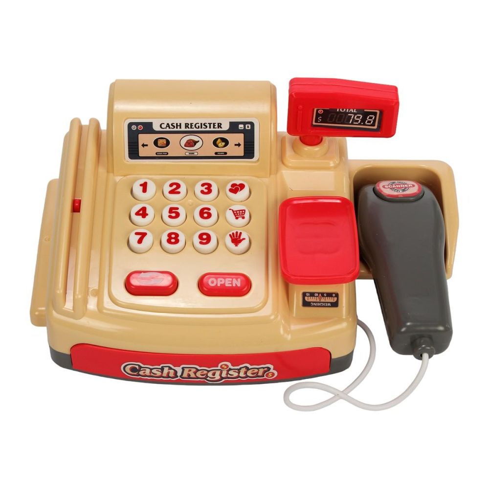 Имеется дисплей, а также прибор для считывания штрих-кодов с товаров. .