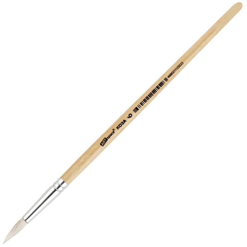 Художественные кисти ArtSpace изготовлены из волоса козы. Длинный, мягкий и упругий волос хорошо держит краску и не оставляет следов на поверхности. Кисть круглой формы с короткой ручкой из дерева предназначена для работы с акварелью и керамикой, в живописи тушью, каллиграфии.