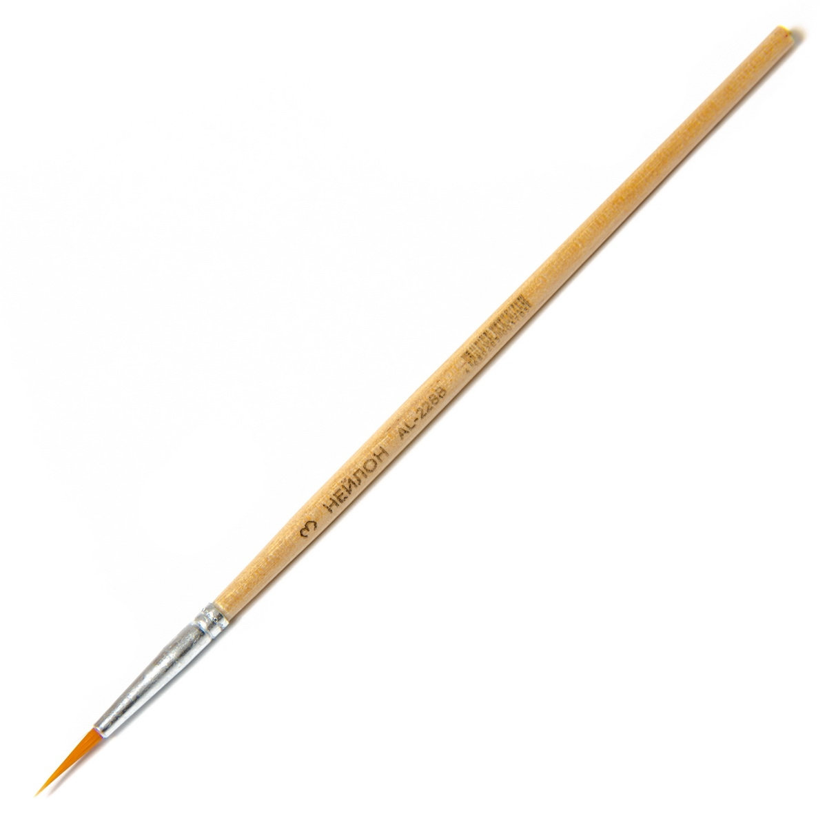 Кисть нейлон, Alingar, круглая №03, обойма обжимная, ручка деревянная