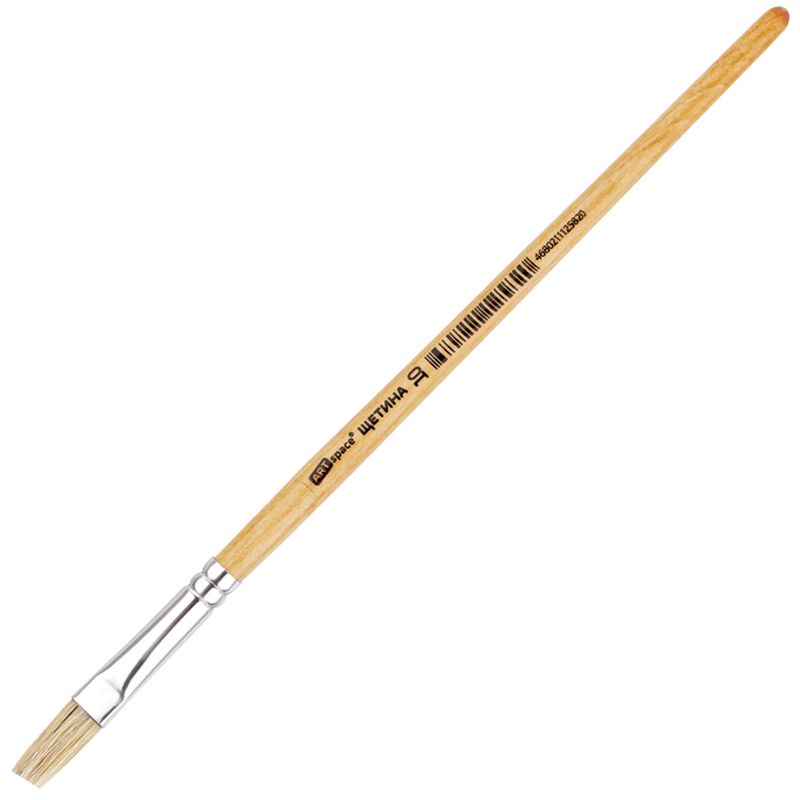 Художественные кисти ArtSpace изготовлены из качественной щетины. Изделие даже после продолжительного использования не теряет форму. Ещё одним важным свойством является расщеплённый кончик, который способствует хорошей наполняемости кисти и ровному нанесению краски. Кисть плоской формы с короткой ручкой из дерева предназначена для работ с «тяжёлыми красками»: маслом, акрилом, темперой, гуашью. Натуральные кисти из щетины - отличный инструмент как для детского и школьного творчества, так для хобби и профессиональной живописи. Ручка кисти изготовлена из берёзы и покрыта глянцевым лаком.