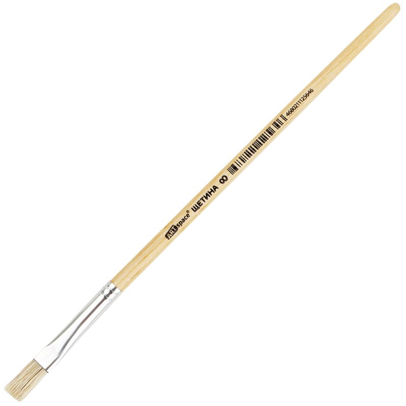 Художественные кисти ArtSpace изготовлены из качественной щетины. Изделие даже после продолжительного использования не теряет форму. Ещё одним важным свойством является расщеплённый кончик, который способствует хорошей наполняемости кисти и ровному нанесению краски. Кисть плоской формы с короткой ручкой из дерева предназначена для работ с «тяжёлыми красками»: маслом, акрилом, темперой, гуашью. Натуральные кисти из щетины - отличный инструмент как для детского и школьного творчества, так для хобби и профессиональной живописи. Ручка кисти изготовлена из берёзы и покрыта глянцевым лаком