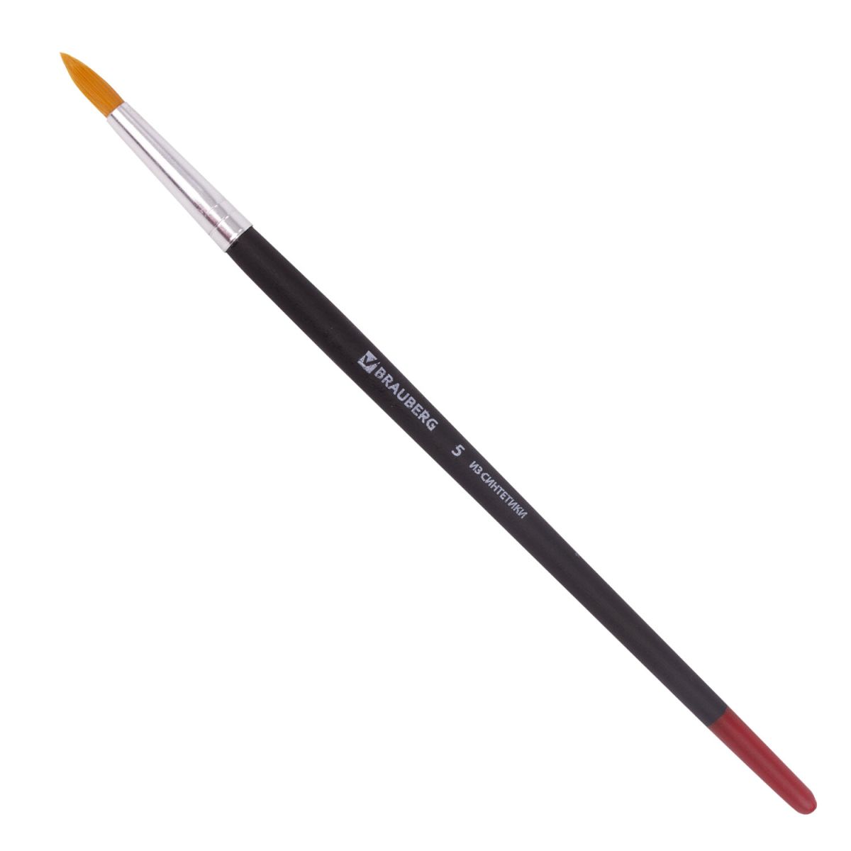 Кисть из синтетического ворса эластичная, не распадается, хорошо держит форму, долговечна и надежна. Кисть № 5 позволит прорисовывать мелкие детали. Деревянную крашеную рукоятку кисти удобно держать в руке.