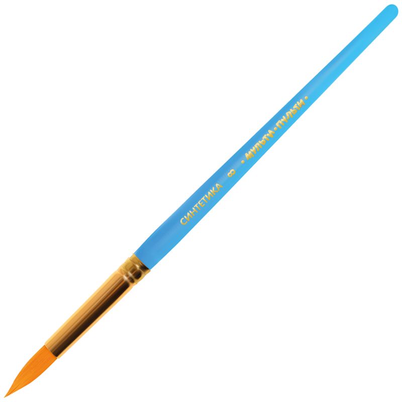 Кисть круглая № 8 «Мульти-Пульти» предназначена для детей с начальным и средним уровнем подготовки. Используемый синтетический волос обладает капиллярным эффектом, поэтому кисть можно использовать в том числе для акварельных красок. Форма обоймы − круглая.
