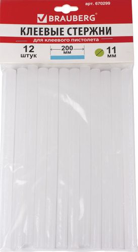 Клеевые стержни диаметр 11 мм, длина 200мм,компл 12шт BRAUBERG 670299