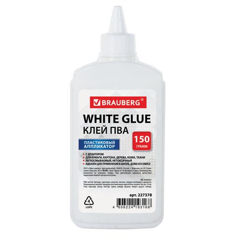 Клей ПВА BRAUBERG (бумага, картон, дерево), 150 г, 227378