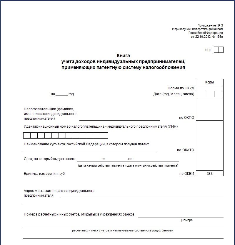 Книга учета доходов индивидуальных предпринимателей, применяющих патентную систему налогооблажения,