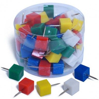 Цветные силовые кнопки с пластиковой шляпкой в форме куба и игольчатой ножкой из стали. Подходят для многократного использования. Не ржавеют и не пачкают бумагу. 60 шт. в пластиковой тубе с крышкой.