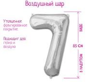 Шар фольгированный 40", цифра 7, цвет серебряный