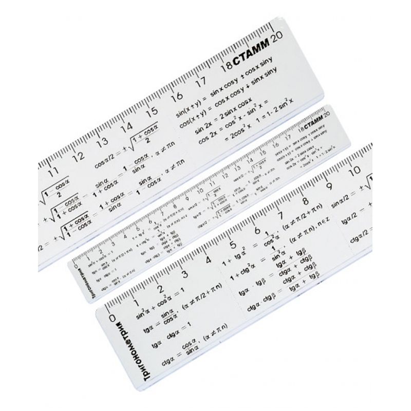 Линейка 20см СТАММ «Тригонометрия», со справочным материалом, пластиковая, прозрачная, бесцветная