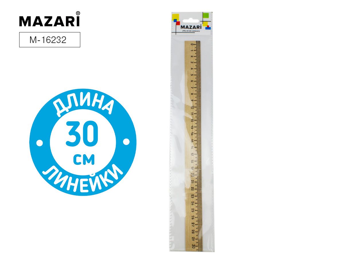Линейка деревянная 30 см, ОПП-упаковка