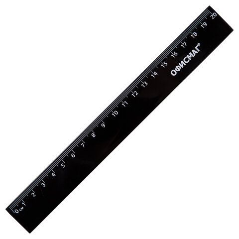 Линейка пластиковая 20 см ОФИСМАГ, непрозрачная, черная, 210777